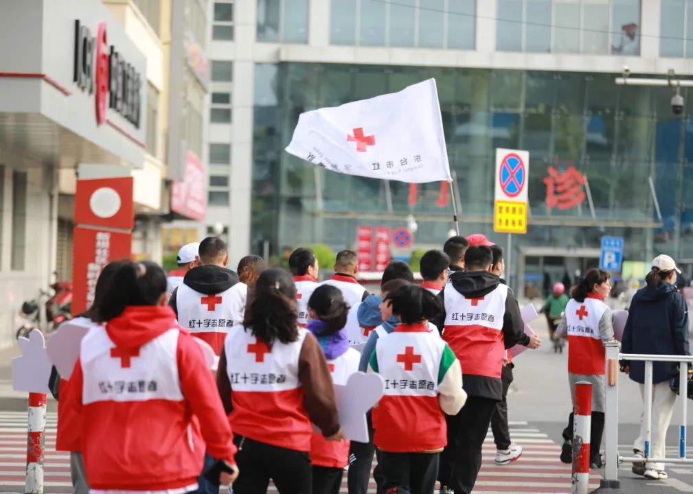 青少年、志愿者、救援队员组成队列,高举红十字“救”在身边、走路就是做公益等手举牌,沿街宣传,号召群众加入到公益行动中来。