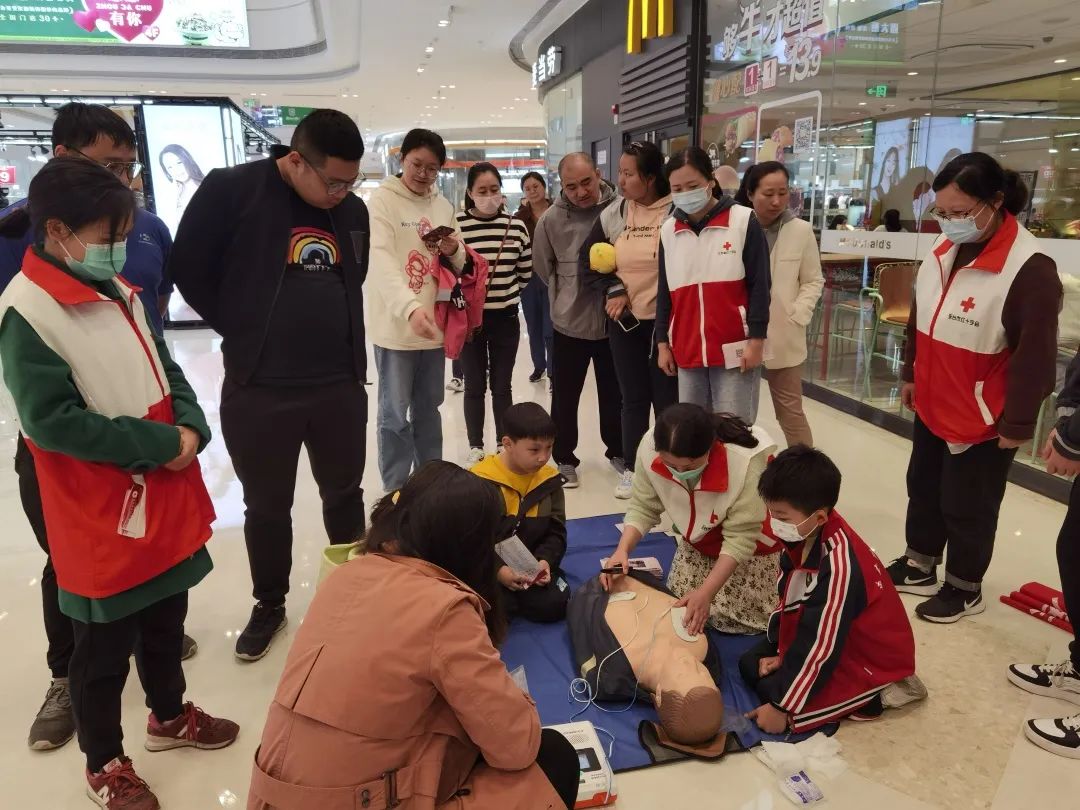 5月6日晚,东台吾悦广场出现了一道红色的身影。由东台市人民医院派出的“摊主”开始行动了。他们是白衣天使、是省红会应急救护培训师资、是红十字志愿者,他们摆开“摊子”,为来往的市民开展AED操作技能的“贩卖”。正由他们,拉开了今年应急救护公益“夜地摊”项目的帷幕。