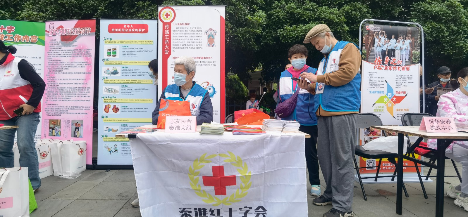 今年5月8日是第76个世界红十字日。5月6日上午,由秦淮区红十字会主办,秦淮区人民政府洪武路街道办事处、洪武路街道新时代文明实践所、洪武路街道马府街社区博爱家园、秦淮中医院等单位承办的“生命教育 救在身边”——2023年秦淮区纪念世界红十字日暨红十字博爱周活动在郑和公园举行。