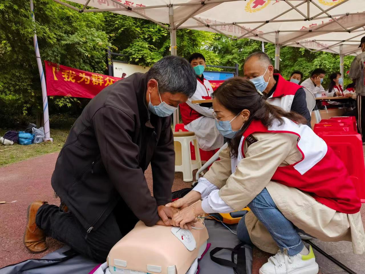 红十字会培训老师还对群众进行了应急救护知识技能教授。大家认真听取讲解,仔细观看老师的现场演示,纷纷参加互动,老师耐心纠正动作,让大家真正学到了实用的自救互救知识技能。