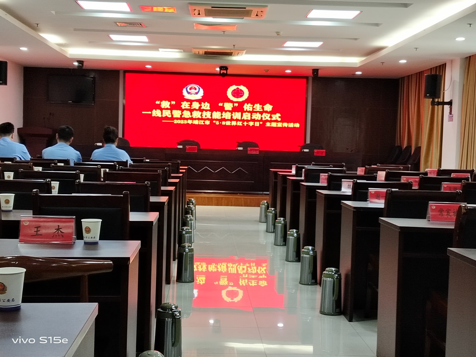 为进一步增强基层民警应对突发事件、意外伤害事故的应急救援、自救互救能力,提升为民服务水平。5月8日“世界红十字日”到来之际,靖江市红十字会、公安局联合行知社会工作服务中心、179志愿者协会举行“‘救’在身边,‘警’佑生命”应急救护进警营活动。