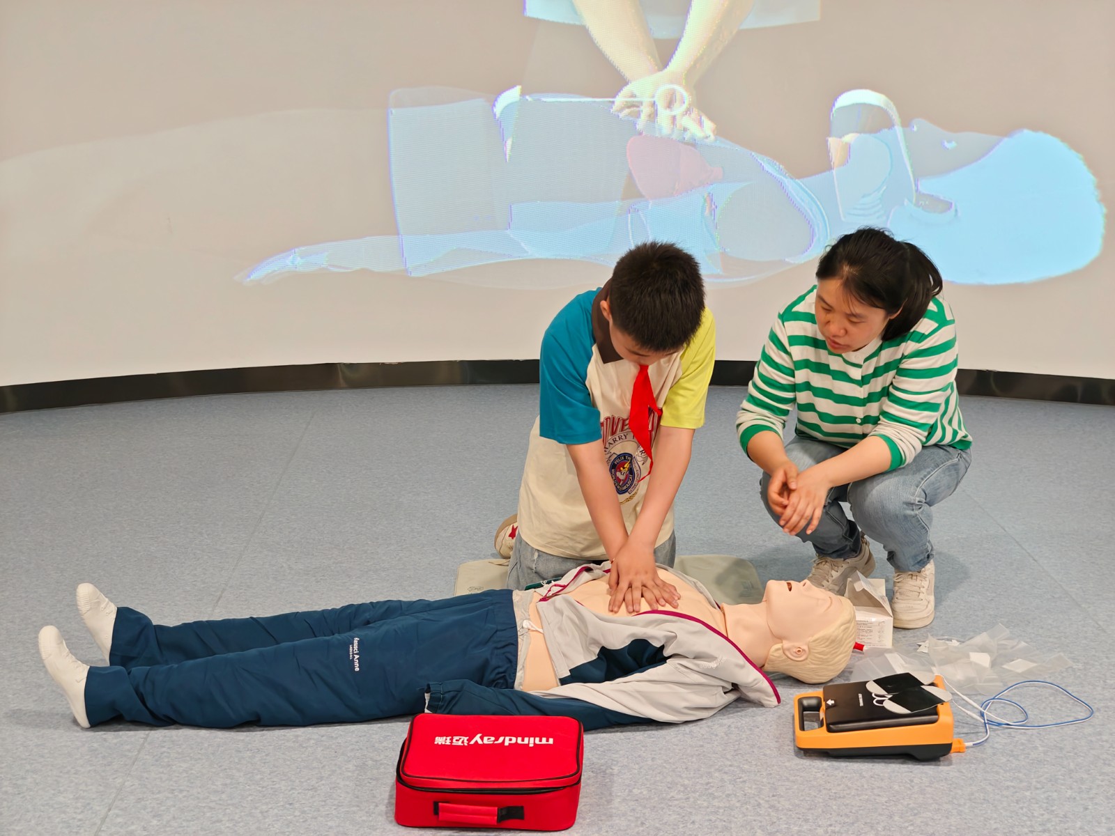 红十字亲子研学活动第二站我们来到位于太仓公共卫生中心主楼3楼的太仓市健康科普体验馆暨市民急救培训基地。在讲解员的带领下,亲子研学小队的成员们沉浸式学习了健康知识、树立了健康理念、培养了健康技能。