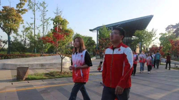 活动期间,志愿者们热心为游客提供游览引导和讲解服务,细心搀扶高龄或行动不便的游客,向游客讲解应急救护等方面的知识。华灯初上,夜幕降临,志愿者们按照既定分工迅速就位。一个个红马甲,一阵阵喇叭声,为音乐节的外场也增添了一抹独特的活力。不管是出口,还是中心广场,每一处都有红十字志愿者的身影,他们或举起喇叭,引路分流;或细心询问,答疑解惑;或挥动手臂,指明方向……