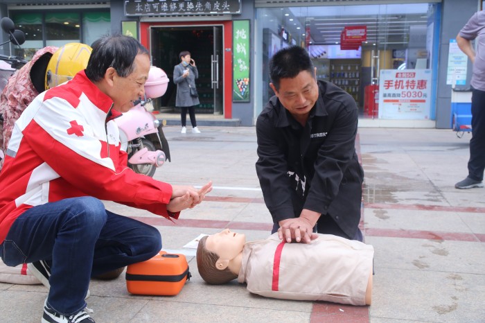 活动现场,工作人员通过摆放展板,分发宣传资料、现场操作心肺复苏、专家解答、眼科检查等方式,宣传红十字运动、人道公益项目、应急救护、无偿献血、遗体器官捐献及健康保健等方面知识。区红十字会志愿者还现场为群众演示心跳呼吸骤停时如何进行心肺复苏、外伤救护等技能,指导市民学习急救知识和技能。