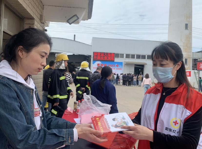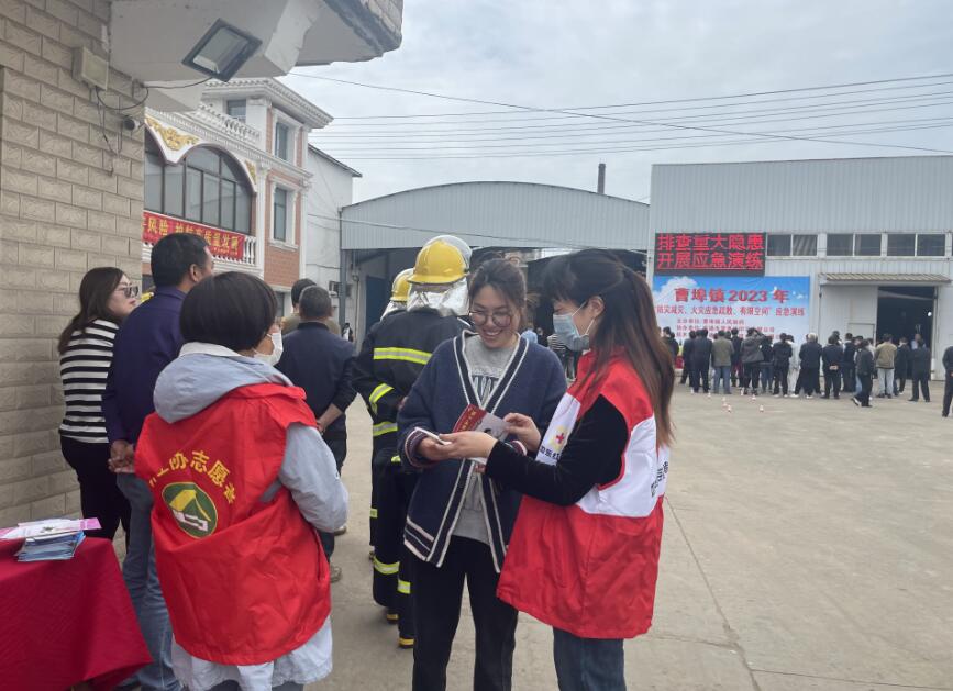 为做好第15个全国防灾减灾日宣传工作, 5月11日下午,曹埠镇红十字会联合安监、消防、卫生、教育、计生等部门在富贵源印花有限公司开展“防灾减灾、火灾应急疏散、有限空间”宣传及应急演练活动。
