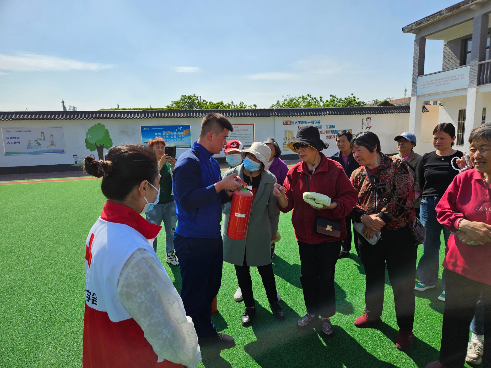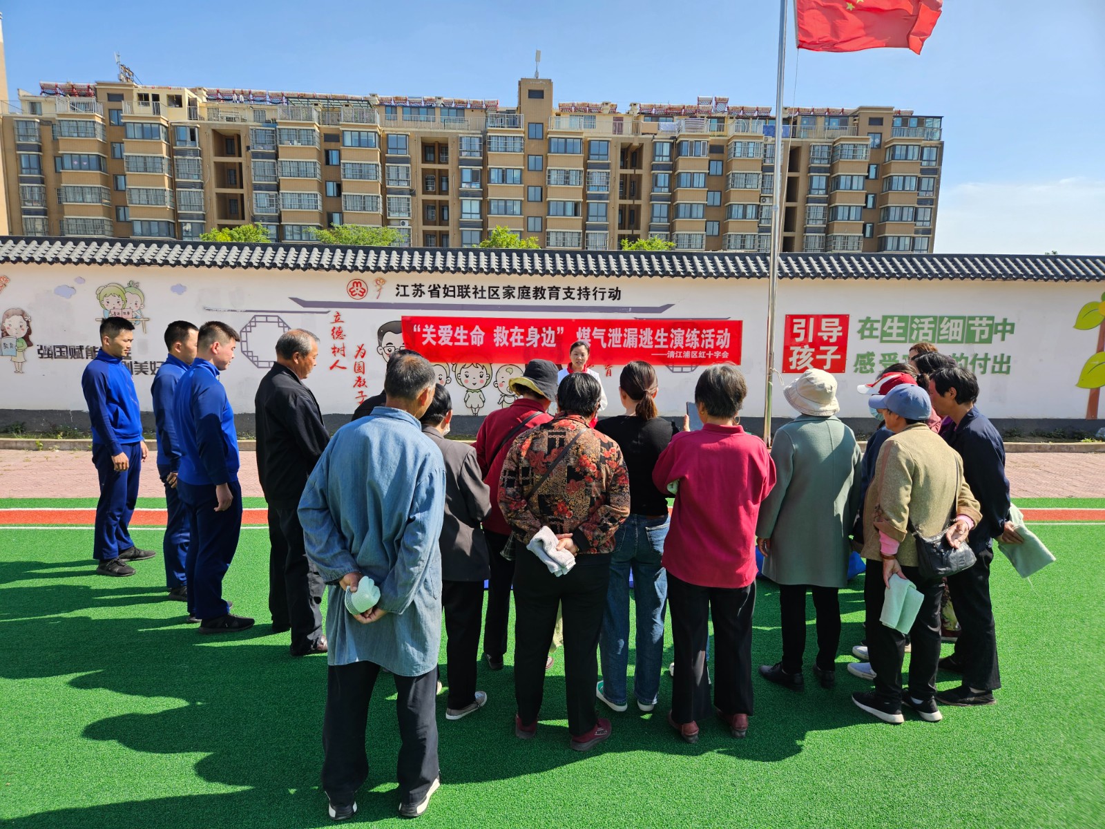 消防支队教官向居民们讲解了火灾逃生要领等知识,并就逃生过程中的应急避险和自救互救技能进行了通俗易懂的讲解。在互动环节中,居民踊跃回答问题并获得清江浦区红十字会送出的急救小礼品。