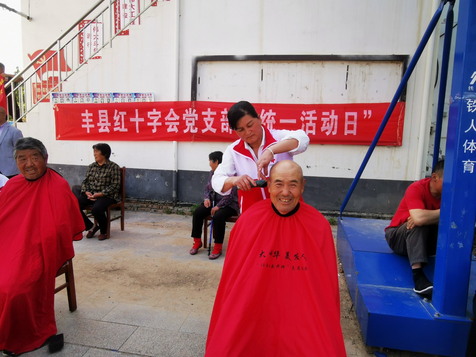 近日,丰县红会联合红十字无偿献血志愿服务队的志愿者开展进农村为老人免费理发活动。参与义剪活动的志愿者都是各理发机构的专业理发师。每到一处都受到老人的热烈欢迎,针对一些行动不方便的老人,志愿者们就入户为老人服务。