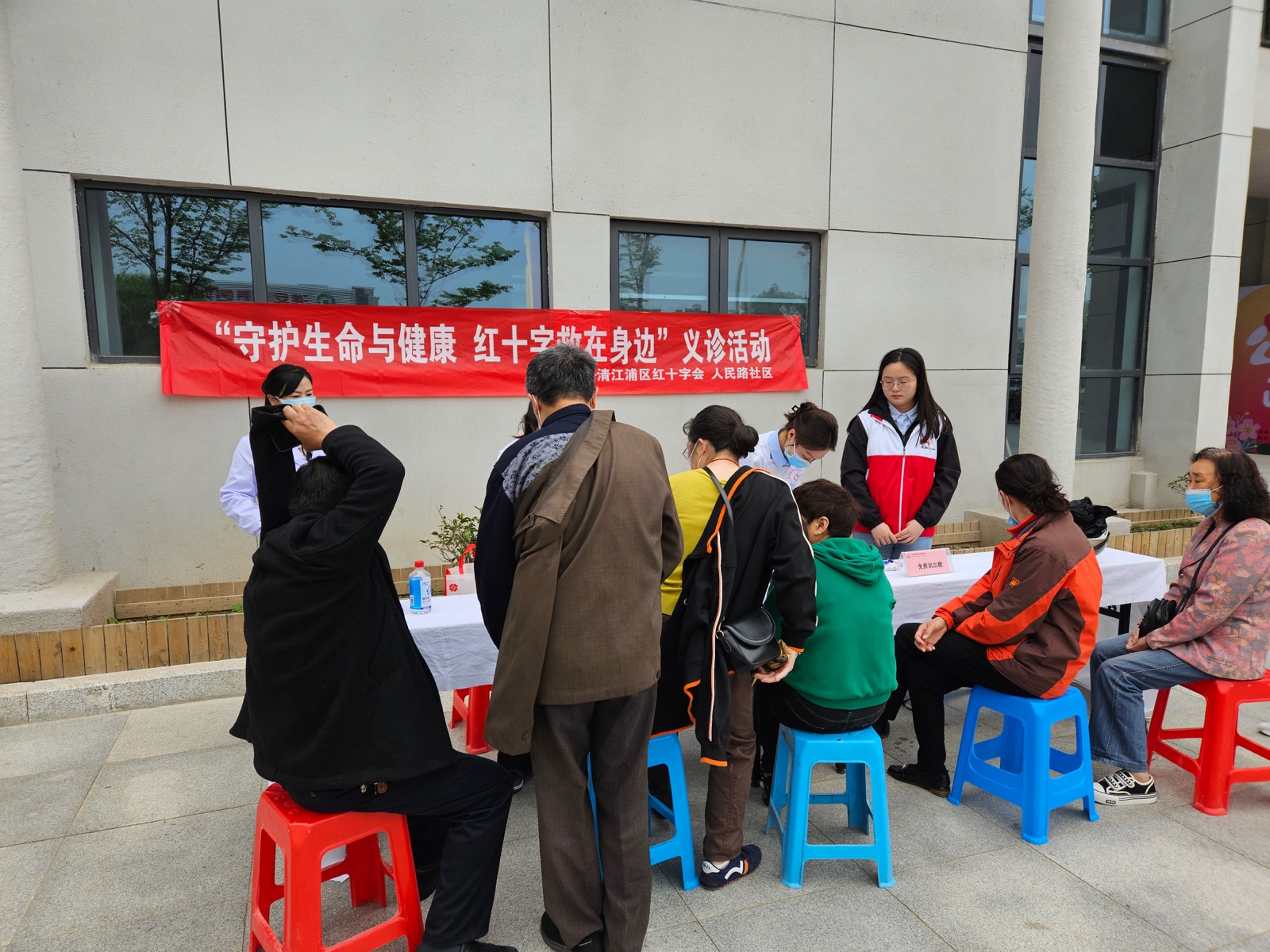5月11日上午,为纪念第76个“世界红十字日”清江浦区红十字会工作人员来到人民路社区开展广场义诊活动,此次活动邀请了市四院的专业医护人员来免费为社区居民测量血压、血糖。