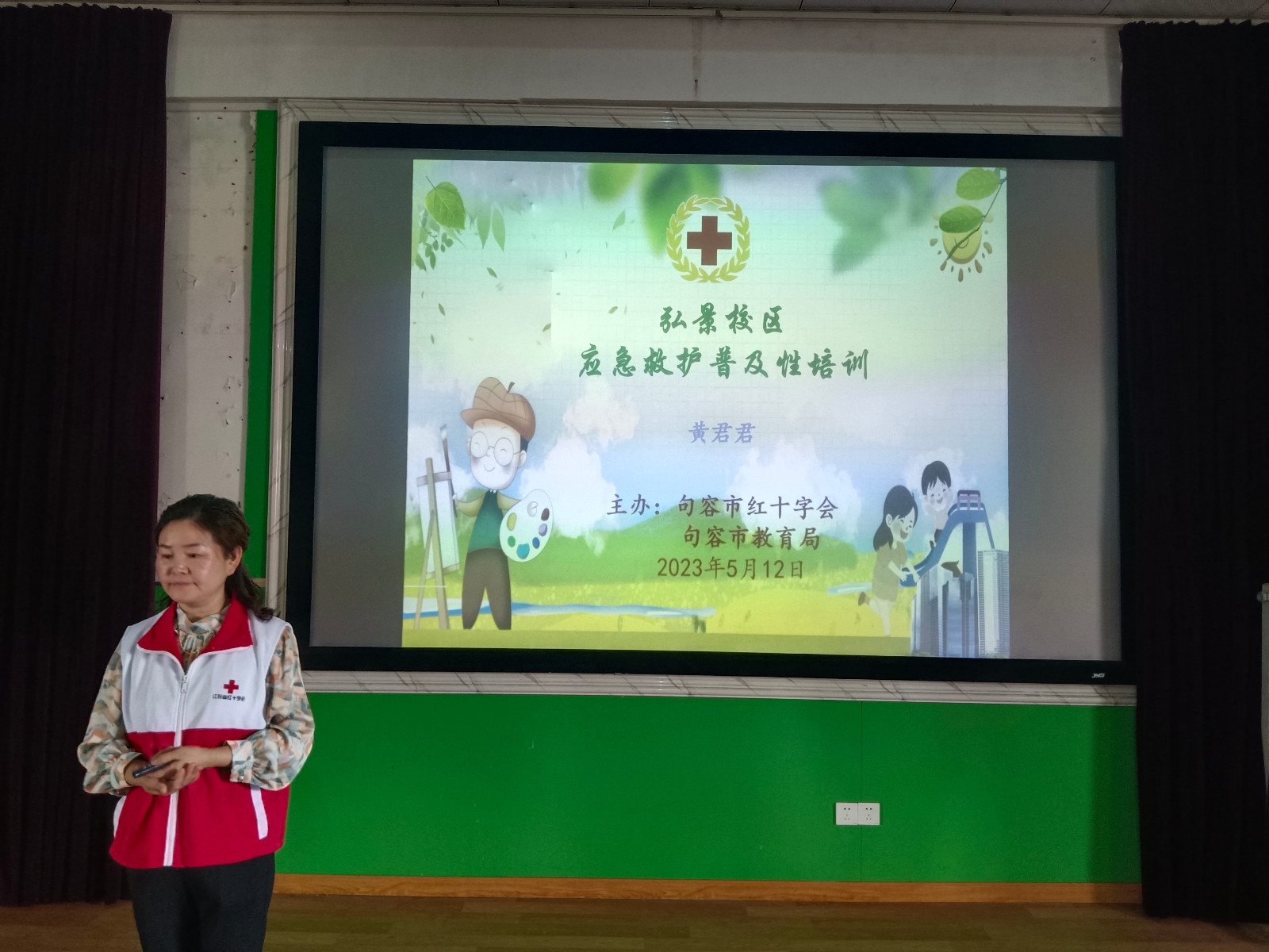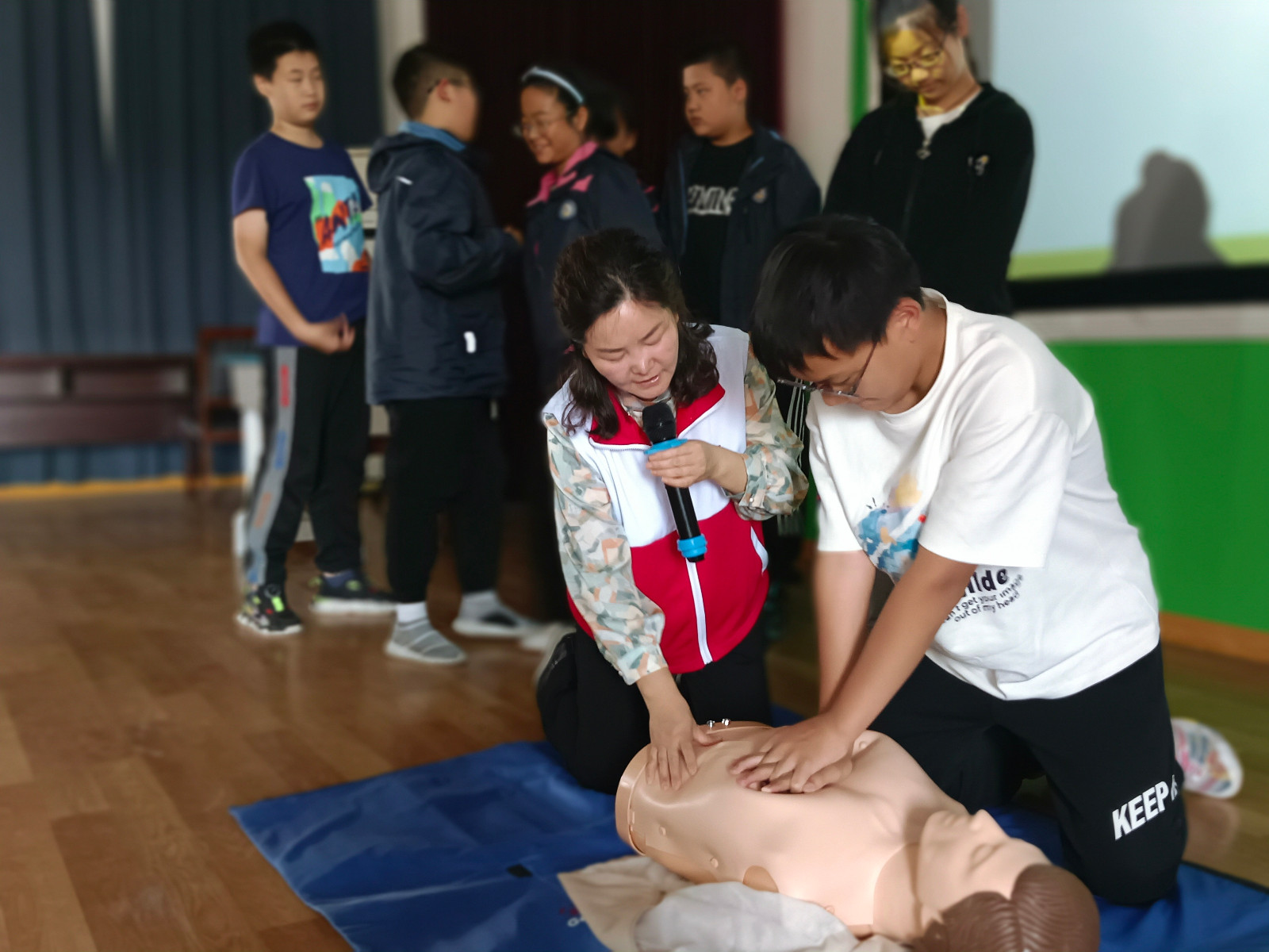 12日,红会讲师朱水清、黄君君来到句容青少年社会实践基地,为来自河滨路小学和华阳实验小学弘景校区的450名学生上了一堂非常重要的课——应急救护普及性培训。
