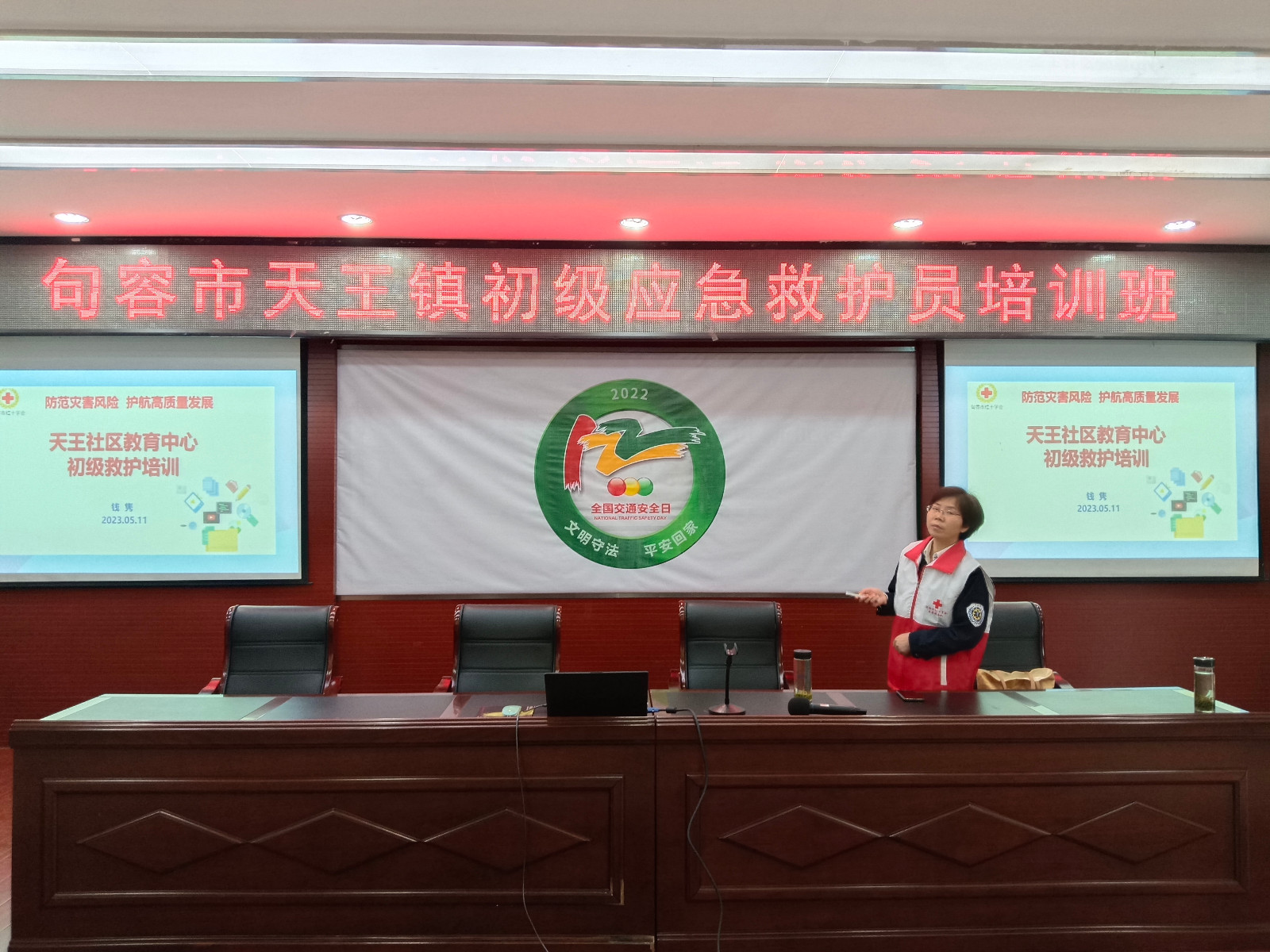 为进一步做好全国防灾减灾日宣传教育工作,11日,句容市红十字会组织师资力量来到天王社区教育中心开展初级救护员培训活动,天王中心小学部分教师和社区居民近60人参加培训,红会讲师钱隽、黄君君、朱水清授课。