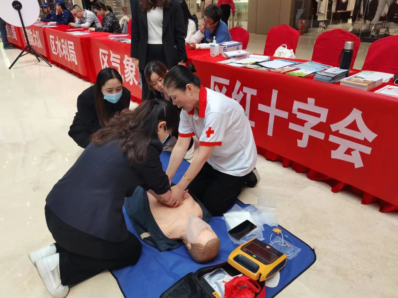 今年5月12日是第15个“全国防灾减灾日”。当天,亭湖区红十字会组织区红十字应急救援队队员、应急救护培训讲师、红十字志愿者参加全区“防范灾害风险 护航高质量发展”集中宣传咨询活动。