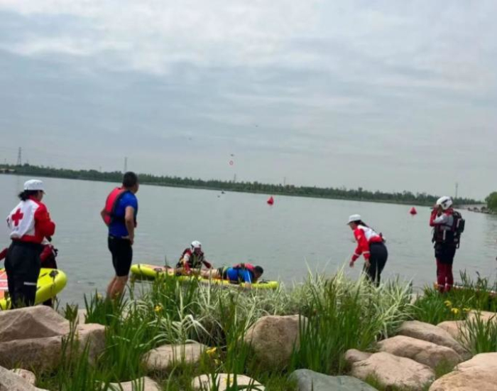 这次演练涉及水哉、医疗、赈济三大类,共实施灾情评估、营地搭建、OSO机动驾驶、抛绳救援、桨板救援、无人机救援、冲锋舟定点求溺、潜水救援、医疗救援等救援项目。
