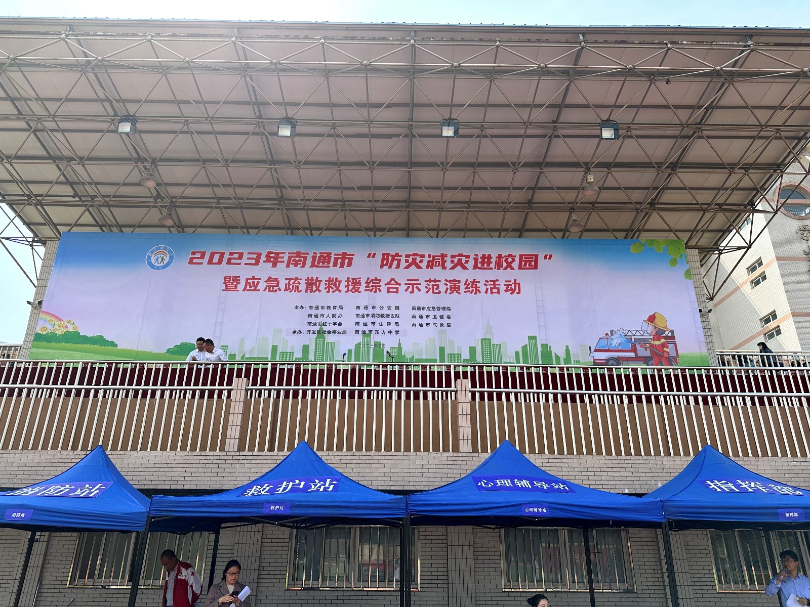 5月12日,南通市教育局联合南通市公安局、南通市应急管理局、南通市人防办、南通市消防救援支队、南通市卫健委、南通市红十字会、南通市住建局、南通市气象局等九家单位在在南通市东方中学联合举办了以“防范化解灾害风险,筑牢安全发展基础”为主题的“防灾减灾日”教育与演练现场会。
