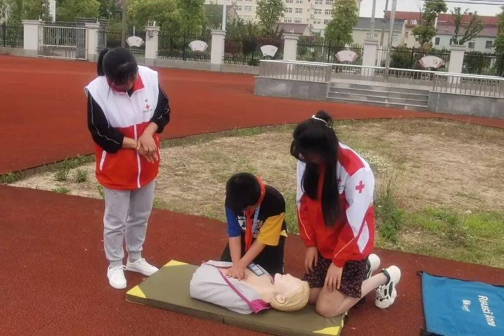 红十字会的老师根据小学生的身心特点,在急救知识培训中重点讲了气道异物梗阻时的——海姆立克急救法,并编了适合孩子记忆的“石头、剪刀、布”熟记口诀。同时,利用模拟人向师生们讲解了心肺复苏的急救知识,手把手指导学生利用模拟人上手练习。