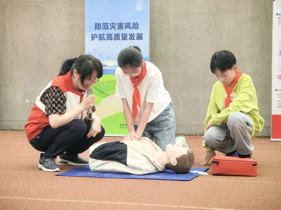 防震演练结束后,开展了“5▪12”防灾减灾日新时代文明实践主题宣讲。活动中红十字会的老师给现场的孩子们讲解了心肺复苏以及海姆立克法的相关知识。在老师的指导下,学生和老师动手实操,练习心肺复苏和海姆立克发等应急救护技能。