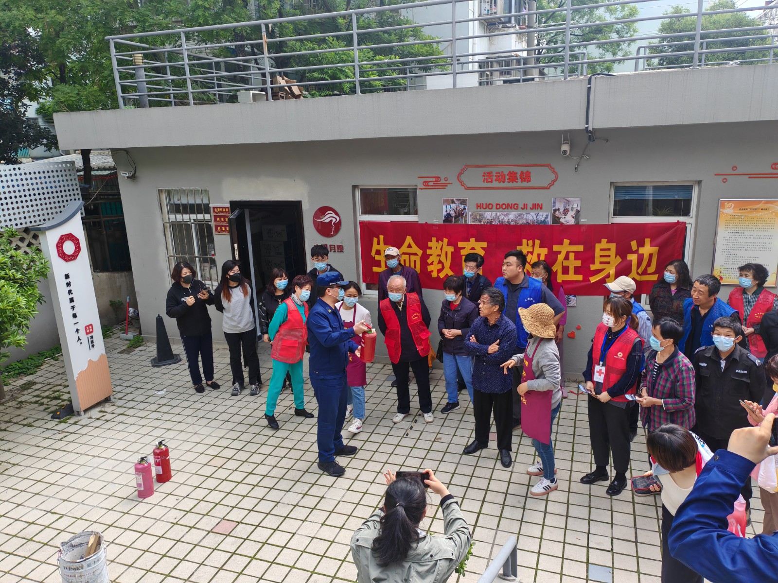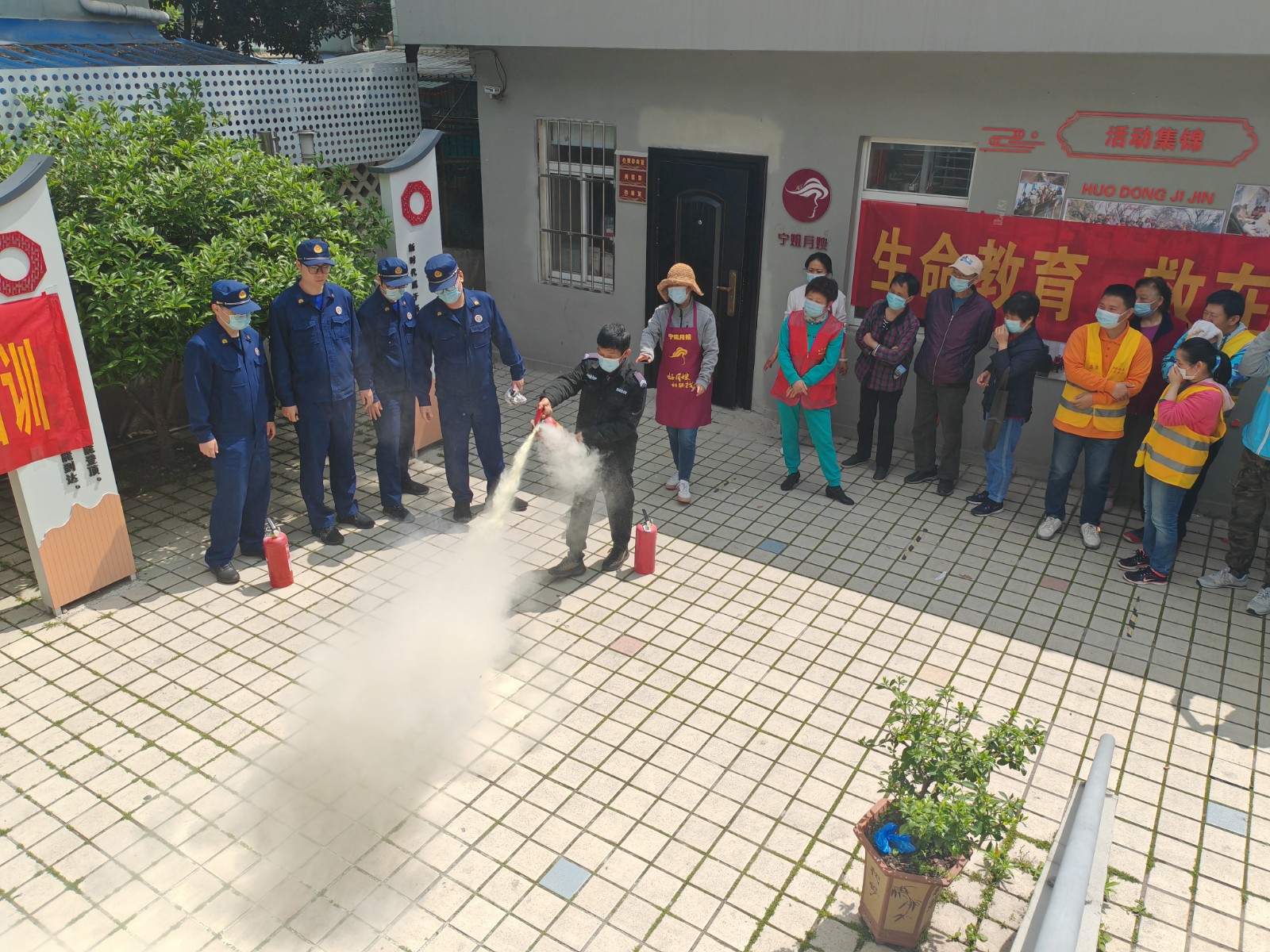 活动分为两个板块,首先是模拟文明实践所突发火情,消防安全人员快速进行火情处置,并在第一时间疏散室内的来访居民群众,将他们安全撤离至安全地带。随后,现场模拟一楼杂物着火,消防队员快速将火情扑灭。演练时,消防队员还穿插消防安全讲解,现场向居民群众讲解发生火情时如何快速扑灭、进行安全转移以及消防器材的正确使用方法,以提高大家居家消防安全自救能力。