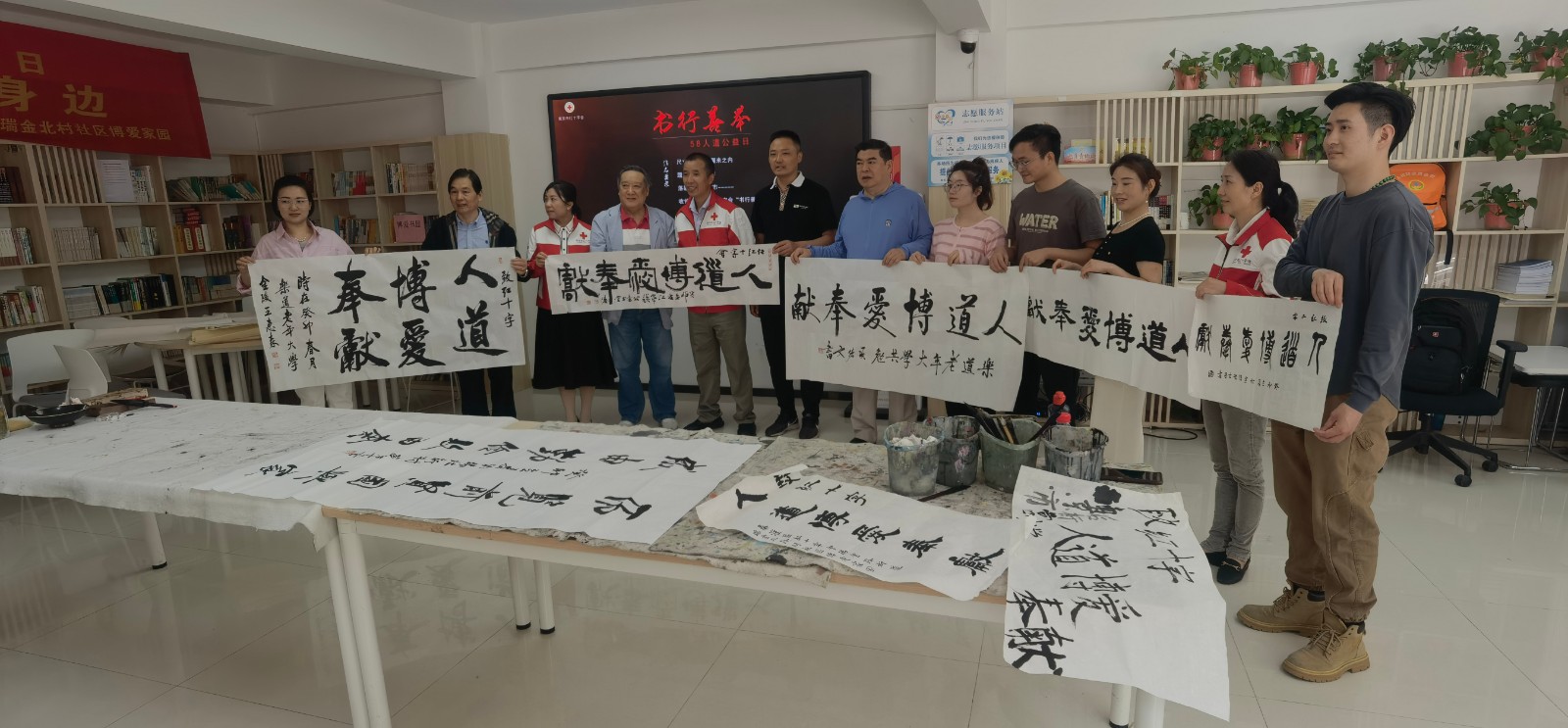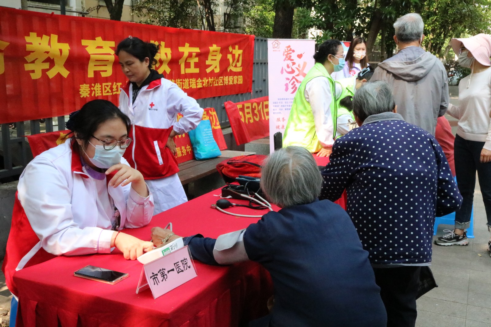 活动还穿插红十字知识有奖问答和文艺演出,通过群众喜闻乐见的形式传播人道博爱奉献的红十字精神,社区居民参与的积极性很高,另外秦淮区红十字会及瑞金路街道瑞金北村社区志愿服务队,联合结对单位南京市秦淮区福寿康社区居家养老综合服务中心、南京市第一医院、南京太乙堂中医院、南京市秦淮区蓝旗社区卫生服务中心现场开展理发,测量血压、血糖,牙齿筛查等“博爱送健康”义诊现场答疑等志愿服务活动。同时还可以欣赏“书行善举”手书作品。现场氛围浓厚,深入广泛宣传了红十字会博爱精神,结合瑞金路养老照护,助老敬老特色,持续为更多居民及老年人服务,进一步扩大红十字会的社会影响,传播“人道、博爱、奉献”的红十字精神。