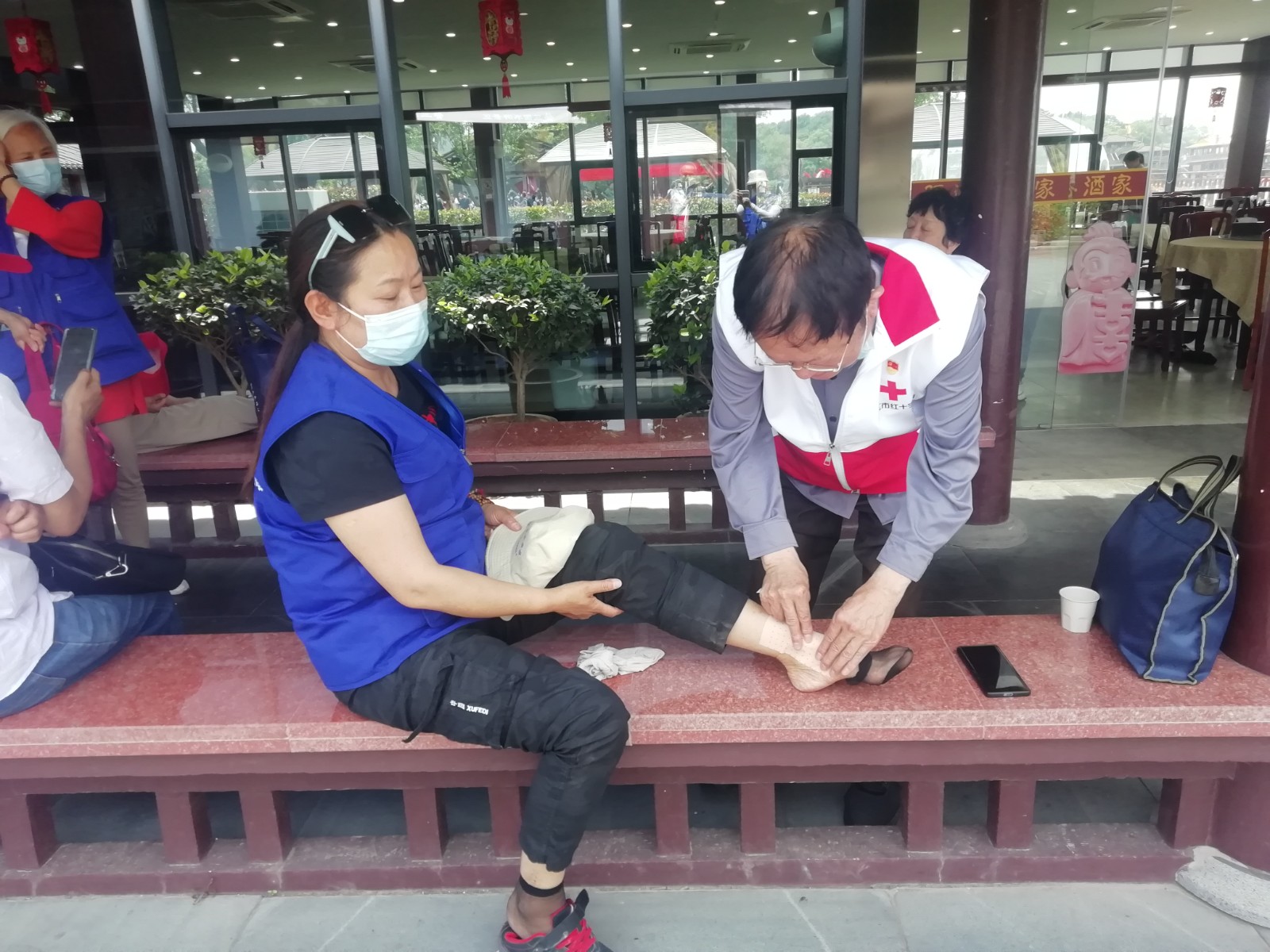 数位红十字志愿者应邀参加,现场给予指导并主动提供医疗救护保障志愿服务。