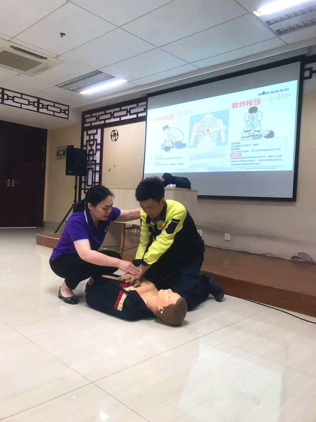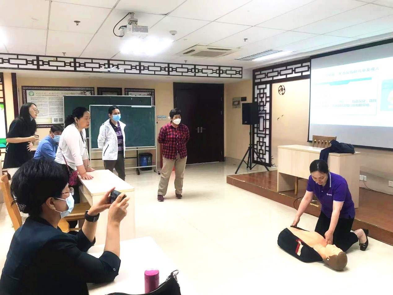5月19日,在南京市建邺区沙洲街道活动室,中胜社区红十字会邀请明基医院护士长张善为50多位九小从业人员、老年居民和部分物业从业人员进行急救知识培训,将心肺复苏、海姆立克急救法和溺水后的急救知识传授给居民。
