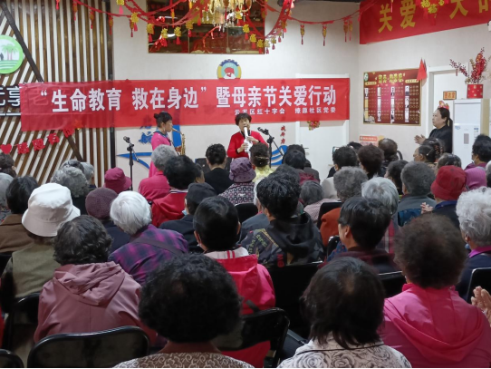 百花齐放,志愿服务擦亮活动品牌。在彭城街道燎原社区,一场以关爱生命、感恩母亲为主题的“生命教育 救在身边”暨母亲节关爱活动为“红十字博爱周”注入了许许温情。辖区百余名母亲参加了活动,自编自演的节目让场内笑声和掌声此起彼伏。同时,在社区开展的“邻里互助”志愿服务活动,对区内重点孤寡、独居老人进行了慰问服务,在社区与家庭的共同努力下,丰富了基层养老照护、健康保障、志愿服务等形式。在骆驼山街道津东社区,红十字春季健康讲座聚焦季节多发病的特点和预防,深入浅出的讲解让老人们受益匪浅。在户部山景区救护站,户部山红十字志愿服务队的队员们在景区门口为来往人群发放红十字知识传单,提供红十字应急服务,并进行日常巡视志愿服务。在潘塘街道秋水湾红色教育基地,区红十字会“博爱先锋”党员志愿服务队带领区内老党员们参观红十字景区救护设备与服务体验,发挥阵地平台优势,提升了红十字人道品牌的形象和传播。