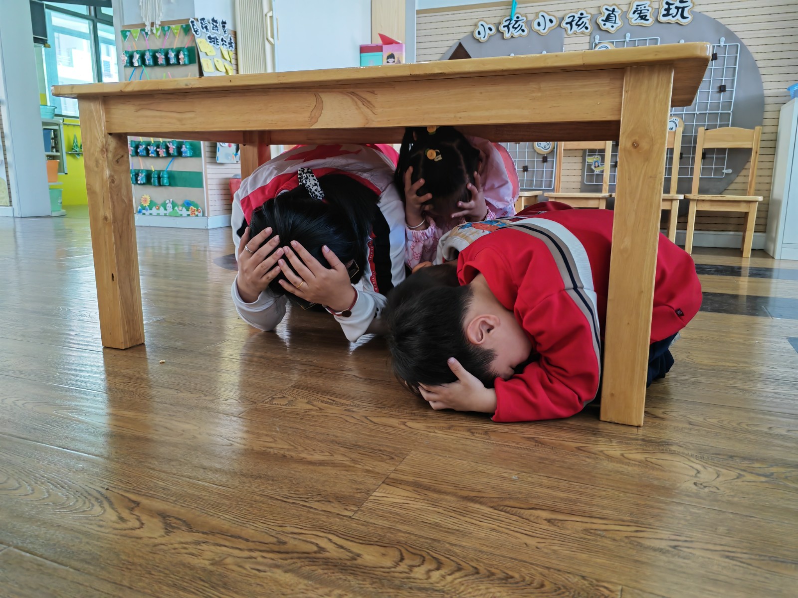 活动开始,志愿者们分头行动,有的进入班级,以视频、真实案例、图片、情景演练等多种形式,引导孩子们充分了解地震、台风、雷雨等自然危害,熟悉并学习了避险和自我保护的正确方式,提高幼儿的安全防护意识。有的带领孩子们一起参加地震演习,了解应急避震的正确方法并熟悉震后紧急疏散的程序和路线,提高突发事件下的应急反应能力和自救互救能离。