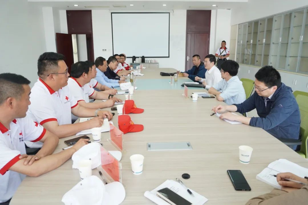 聂城部长带队前往东台市委组织部、市财政局、应急管理局走访调研党组建设和作用发挥情况、救援队组织建设、管理和能力水平和地方相关政策等情况。19日上午,调研组到市红十字救援队工作场所、训练场地、救援装备仓库,现场调研救援队的工作环境、训练条件、装备配置等情况。并实地察看物资储备库救灾物资储备情况。在与市、县区红十字救援队队长、骨干座谈时,齐书记详细听取了大家对救援队组织架构搭建、队员招募、人员管理、训练演练和经费保障等方面的情况介绍以及对省红十字会在抓全省红十字救援队建设的意见建议。调研组还分别走访了市司法局、雨燕集团等我市救援队队员工作单位,了解队员所在单位对其员工参与红十字救援队的意见建议。