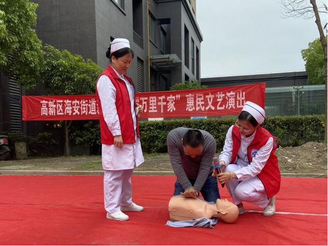 新园社区借助惠民文艺汇演契机开展“关爱生命 爱心同行”主题活动,活动宣讲了无偿献血、应急救援、应急救护、心肺复苏等知识,群众积极参与实践操作。进一步弘扬了“人道、博爱、奉献”的红十字精神。