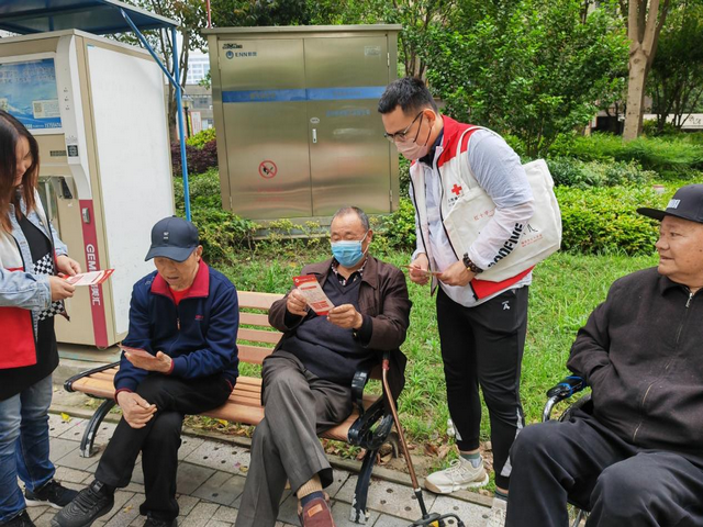 生命无小事,防患于未然,保障生命,尊重生命,是安全教育永恒不变的主题。今年5月8日是第76个世界红十字日,为进一步提高全社会防灾减灾意识、心理承受能力和自救互救能力。复兴社区红十字志愿者们向群众宣传发放应急救护、无偿献血、造血干细胞捐献等宣传资料,并在现场开展了应急救护知识的讲解演示。通过防灾减灾演练、发放宣传单等形式对居民进行防灾减灾科普知识宣传。