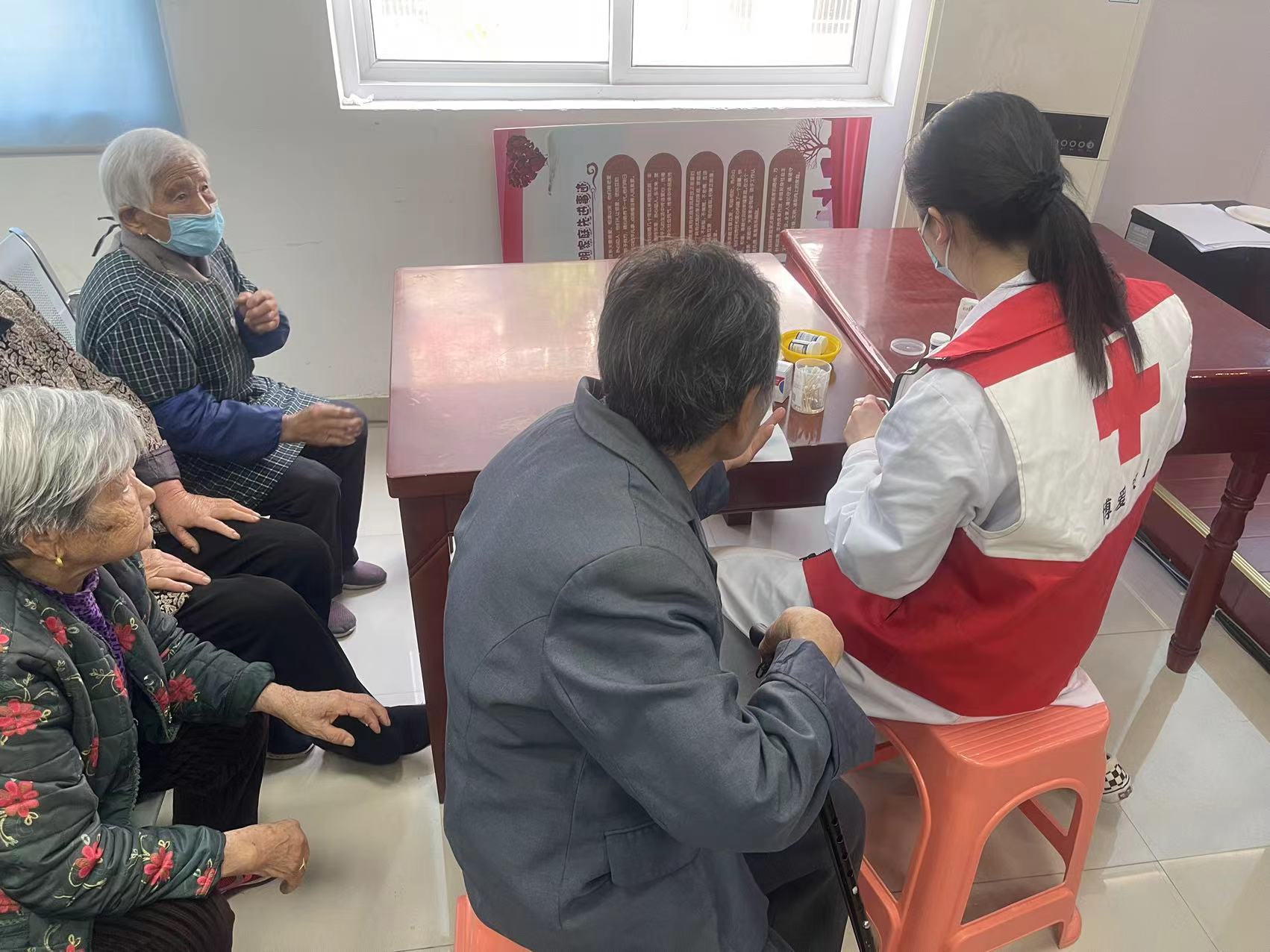 关爱老人是社区力所能及的服务,通过组织开展义诊进社区便民服务,不但将健康送到了居民身边,更多的是将关爱送进了社区,营造全社会共同关注关爱老年人的氛围,进一步弘扬了博爱家园的“人道、博爱、奉献”红十字精神。