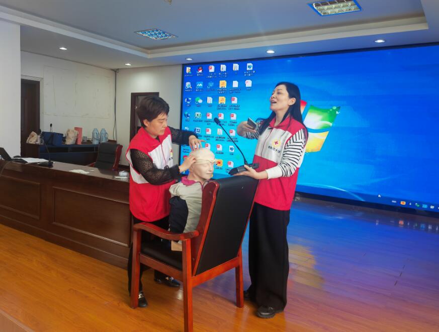 培训现场,红十字会老师采用理论和实践相结合的方式,利用视频案列和图文资料,细致生动地讲解了红十字运动的知识、心肺复苏、创伤救护和意外伤害等常见的急救知识。