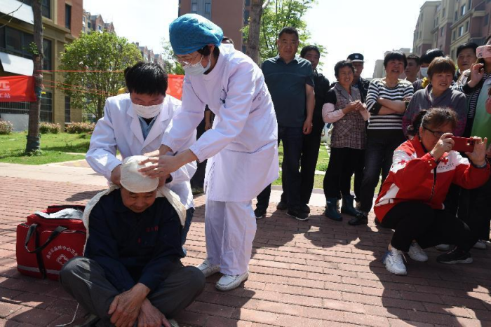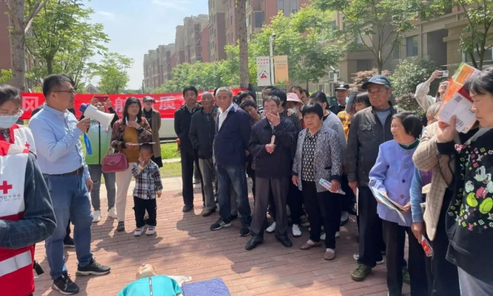 在活动现场,晶桥镇各部门还在向小区居民集中发放了防灾减灾知识宣传手册,向居民们普及灾害风险知识和避险自救互救技能,提升全民防灾减灾意识。溧水区红十字会持证救护员和晶桥镇中心卫生院医护人员利用人工模拟器械向居民演示了心肺复苏术、人工呼吸法、创伤止血及包扎法等紧急救护技术。