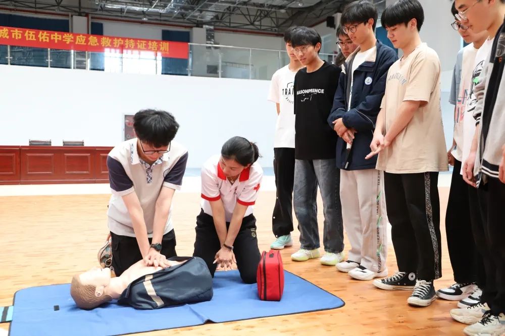 5月21日,亭湖区红十字会走进盐城市伍佑中学普及应急救护知识,为800名学生开展应急救护技能培训。