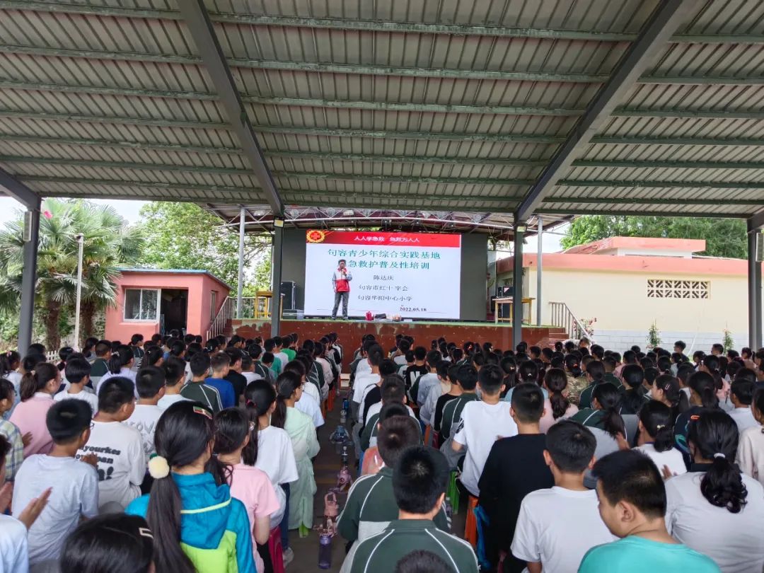 5月18日,句容市红十字会救护培训讲师陈达庆、赵小文来到句容市青少年实践教育基地,为正在这里参加实践教育活动的华阳中心小学、黄梅中心小学496名学生开展急救知识科普培训。