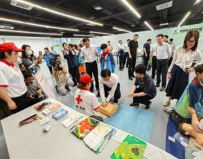 活动现场, 区红十字会工作人员和红十字志愿者开展了献血、造身干细胞捐献、遗体捐赠及急救知识宣传咨询,并发放相关宣传手册;在应急救护演示区,为来咨询的师生讲解急救知识。心肺复苏的急救技能演示吸引了前来参观的众多人群,大家也在志愿者的指导下,认真的做着心脏按压。