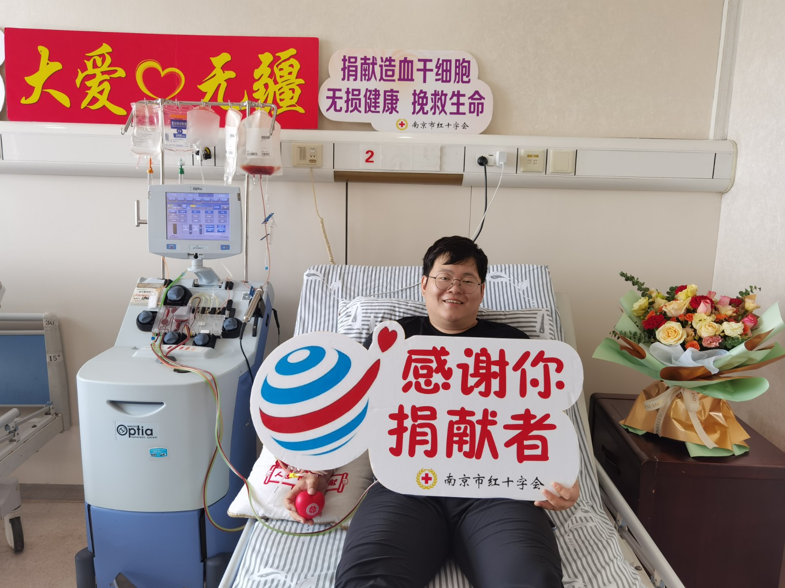 “2023年的3月我接到了红十字会的老师给我打的电话,说有名患者和我配型相合,没想到入库一年多就匹配成功的我既激动又有些顾虑,但是在家人、领导、同事的支持下我完成了高分辨、体检等流程, 虽然还不知道和我配型相符的患者是个怎么样的人,但是希望你能早日战胜病魔,重获新生。也期待有越来越多的爱心人士加入造血干细胞捐献志愿者的行列,为更多的患者带来生的希望”余昊如是说。一通来自南京市红十字会“配型成功”的电话,唤起那颗充满青春热血和善意的心,触发了“十万分之一”的生命奇迹。