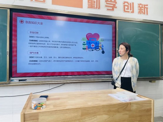 5月16日下午,崇川区卫健委医政科科长曹雪峰为我校红十字会员代表们进行了救护知识培训,根据学生的年龄特点介绍了基础的创伤救护技能,并对学校添置的自动体外除颤仪(AED)进行了重点讲解。课堂上曹科长与同学们频频互动,学生在实践中树立了积极向上的生活态度和正确的人生观、价值观,懂得生命的宝贵。