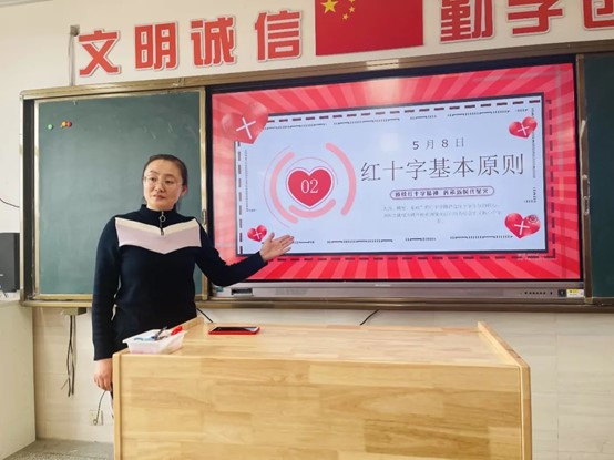 5月10日,班会课上由班主任老师向大家介绍了红十字运动的起源、形象标识、精神文化等相关知识,明确了作为红十字会员应尽的义务和职责。在学习知识的同时,学生掌握了一些基础急救知识,如:中暑、鼻出血、烧烫伤、异物卡喉、骨折急救、煤气中毒、触电急救、宠物咬伤急救……