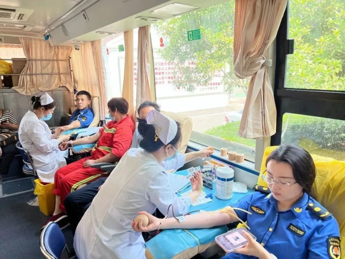 6月2日上午,溧水区红十字会联合区城管局、南京红十字血液中心开展无偿献血活动。