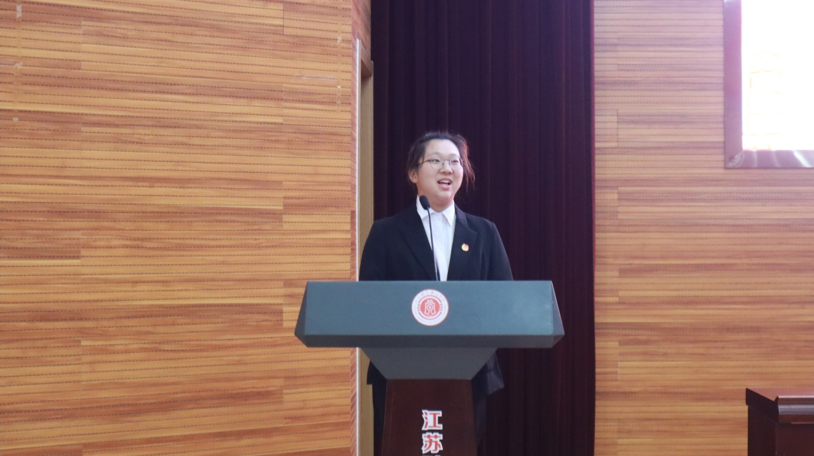 大会在庄严的国歌声中拉开帷幕。董思琦代表连云港师范高等专科学校红十字会学生分会对大会的召开表示祝贺,并赞誉了我校红十字会过去一年在引领志愿服务中的重要作用,希望双方在将来能够进一步加强红十字项目和志愿者等方面的合作,实现共同进步。