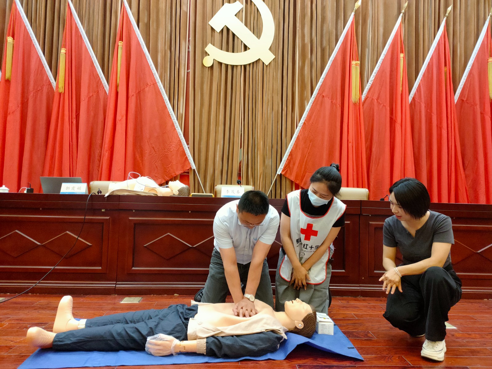 为进一步增强企业从业人员的风险防范意识,提高自救互救能力,6月8日,射阳县红十字会走进经开区,对辖区内近200名工作人员和安全员开展应急救护培训。