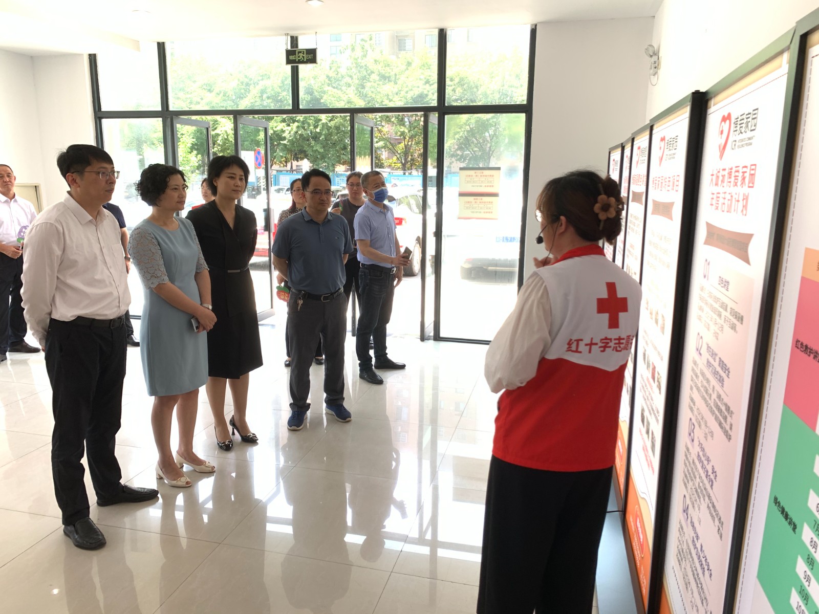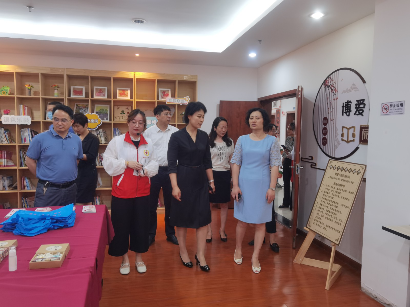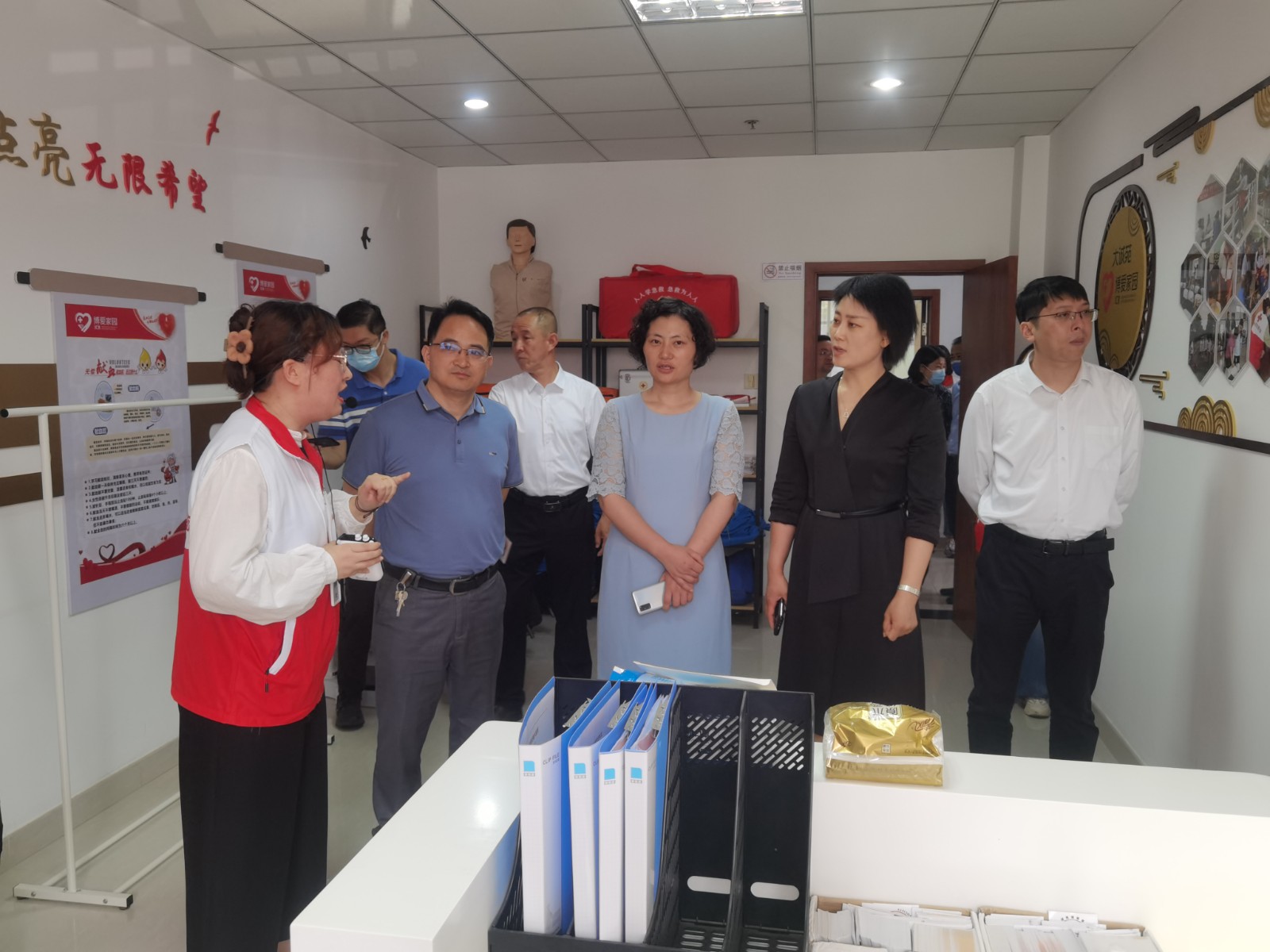 之后考察组来到厚桥街道大诚苑博爱家园,参观了户外的博爱亭、博爱长廊以及室内的红十字心灵驿站、红十字博爱书屋、红十字志愿服务站等多间功能室,社区书记向考察组详细介绍了社区博爱家园打造的三大特色项目:“四色讲堂”、“牵手暖心”和“博爱洗衣房”都深受社区居民欢迎。社区红十字博爱家园有效提升了社区群众的获得感和幸福感,大诚苑博爱家园在2021-2022年连续两年荣获江苏省优秀博爱家园。考察组对大诚苑博爱家园在开展人道救助、救护培训、科普教育、便民服务等方面的创新做法给予一致好评。