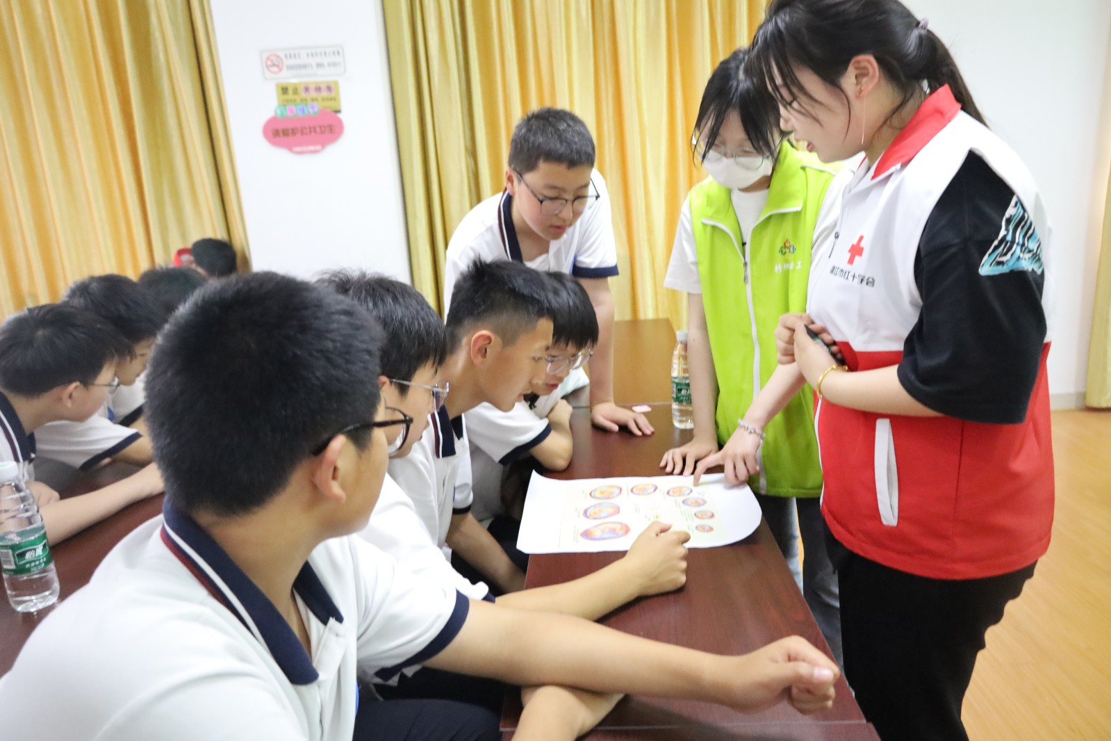 活动现场,红十字的志愿者向同学们提出问题:“我们到底是怎么来到这个世界的?”同学们踊跃发言,说出来很多天马行空的答案:垃圾桶里捡来的,石头缝里蹦出来的……行红十字志愿者通过阅读的方式带着新港城初级中学的同学们自主寻找答案。