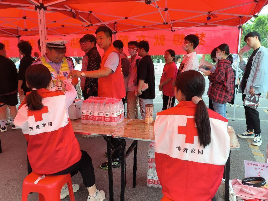 本次爱心助考行动,红十字志愿者们用行动践行着“人道、博爱、奉献”红十字精神,旨在用爱心鼓励学子们在考场上心无旁骛考出好成绩,用爱心为莘莘学子们高考保驾护航!