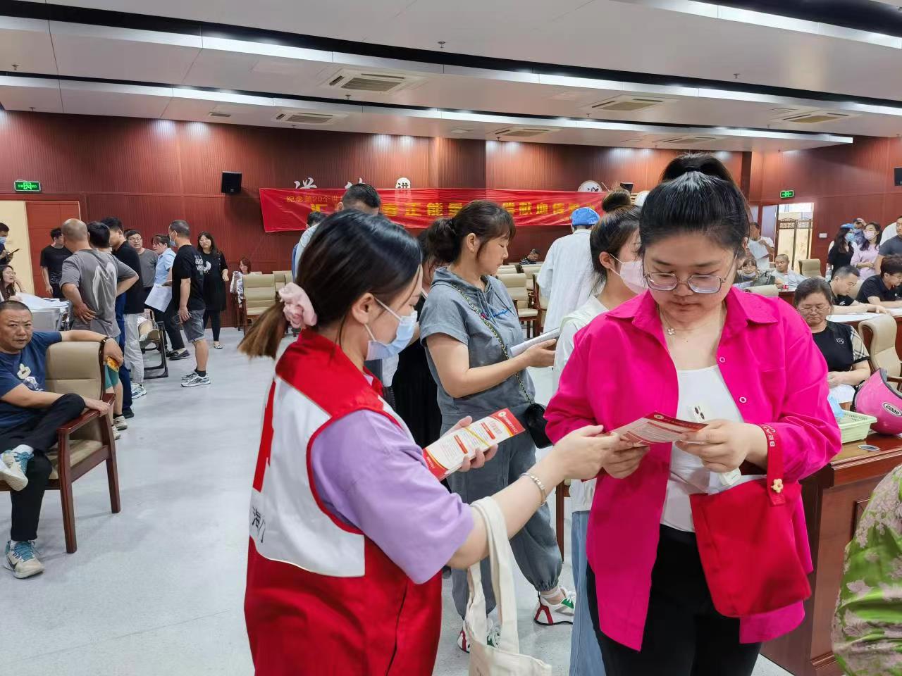 活动现场,红十字志愿者通过放置易拉宝、向无偿献血志愿者发放造血干细胞捐献的宣传折页,现场科普造血干细胞科学知识,消除大家对造血干细胞捐献的误解,动员大家关心、支持造血干细胞捐献工作。