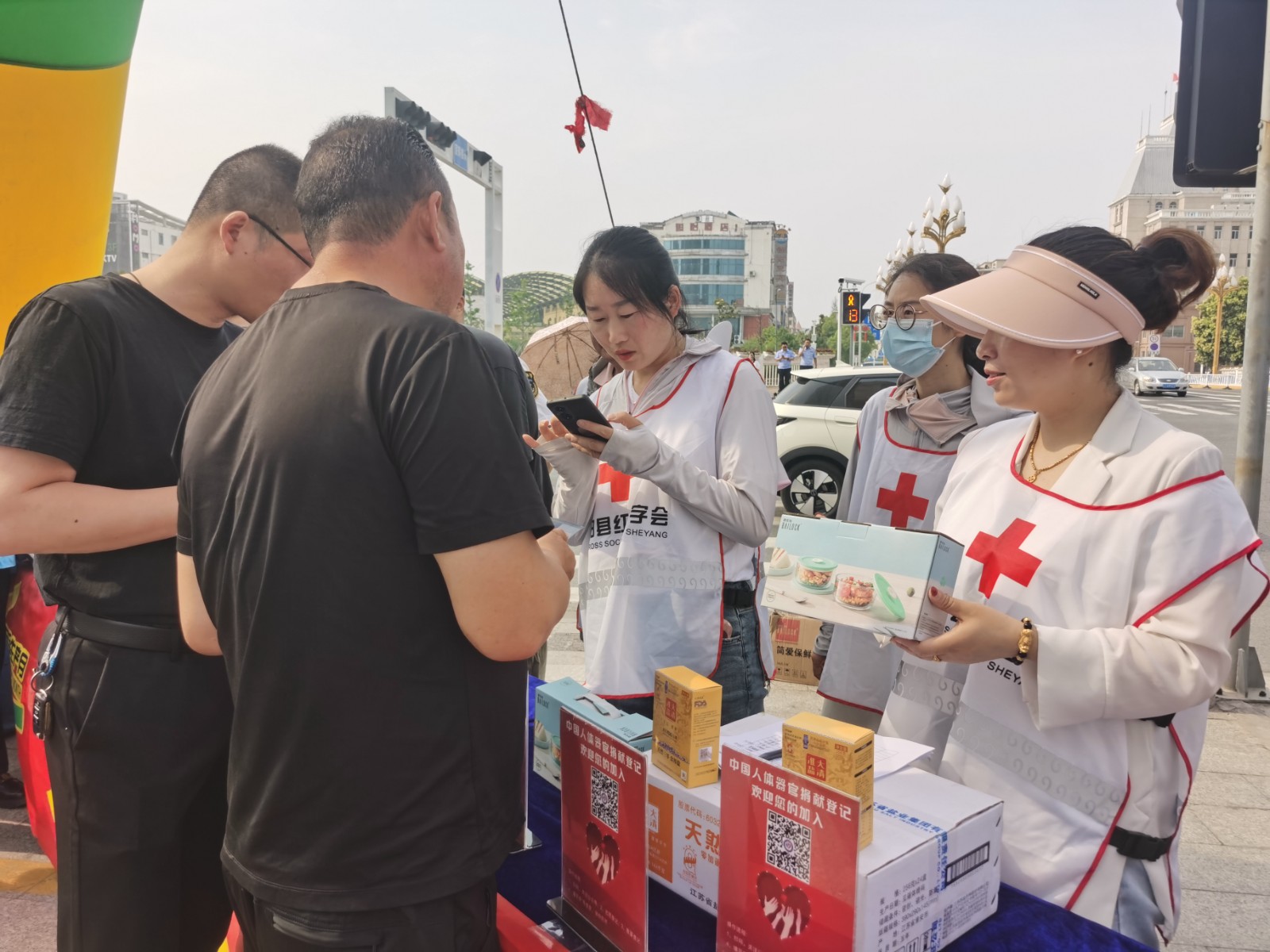 2023年6月16日上午,作为协办单位之一的射阳县红十字会在县城老城区恒隆广场参与全县安全生产月活动。