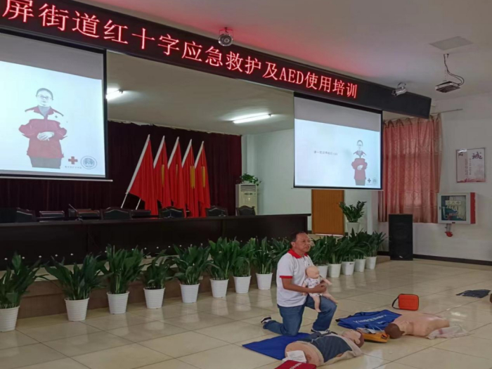 6月2日下午,溧水区东屏街道卫健办、计生协联合区红十字会,在街道办事处和新时代文明实践所二楼报告厅,同时开展心肺复苏术、自动体外除颤器(AED)使用、气道异物梗阻排除等三项急救知识培训,切实提高各单位相关工作人员及村、社群众的应急救援能力。