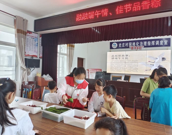6月17日胡庄镇红十字会志愿者在史庄村开展融融端午情-佳节品香粽活动。吸引了周边青少年和家长的踊跃参加。
