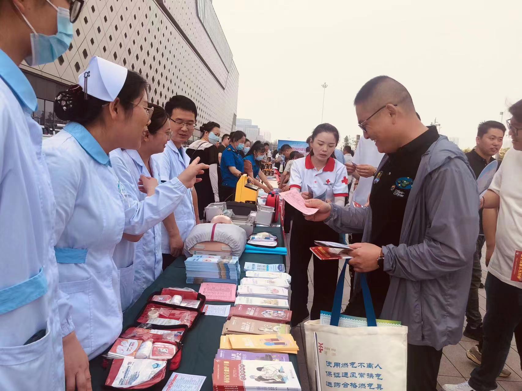同时,冠名红十字医院志愿者还通过讲解急救知识戗板、发放急救知识宣传三折页等方式,向市民宣传日常应对突发情况的急救技巧。通过宣传讲解,进一步提升群众的安全意识和应急素养,不断提高对突发事件的防范意识和自救互救能力。