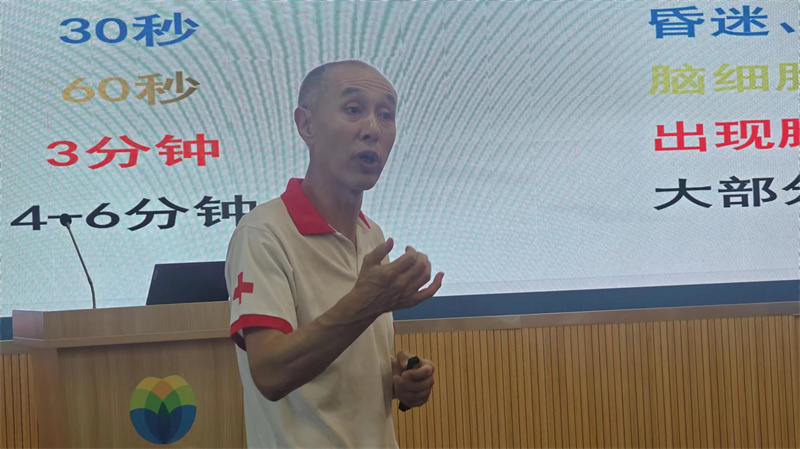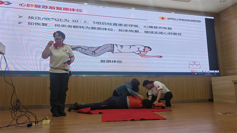 培训采用理论学习和操作演示相结合的教学方式,重点对红十字救护理念、心肺复苏(CPR)、除颤仪AED的使用方法培训技术等内容进行讲解和操作演示训练。培训现场大家认真聆听老师讲课,气氛热烈,互动性强。
