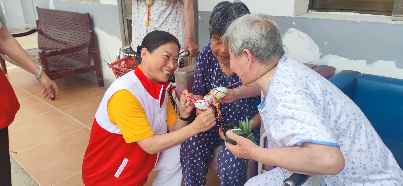 大家包粽子期间,红十字会志愿者人员为居民免费测量血压血糖,并根据居民的身体状况给予建议,还就“夏季如何预防中暑”为广大社区居民传授自我预防措施技能。